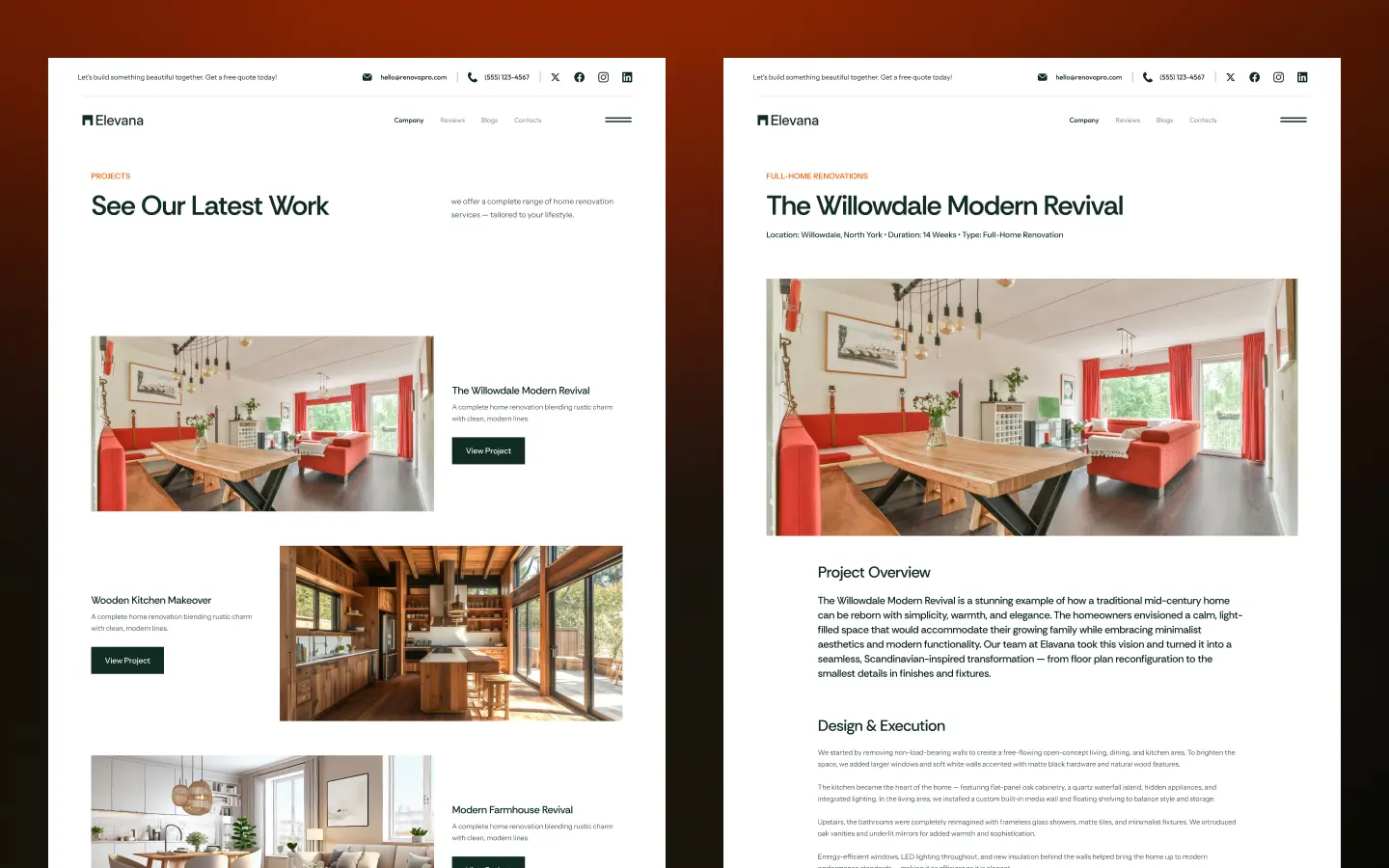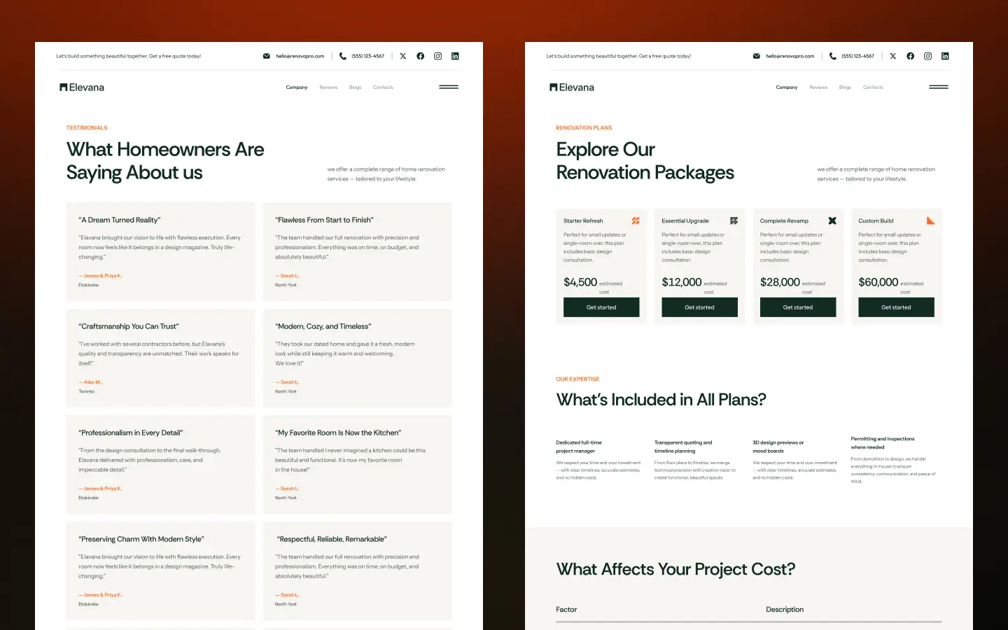 Want to bring more clients to your home renovation business? Elevana is here to help you build a stunning website in minutes, not months.