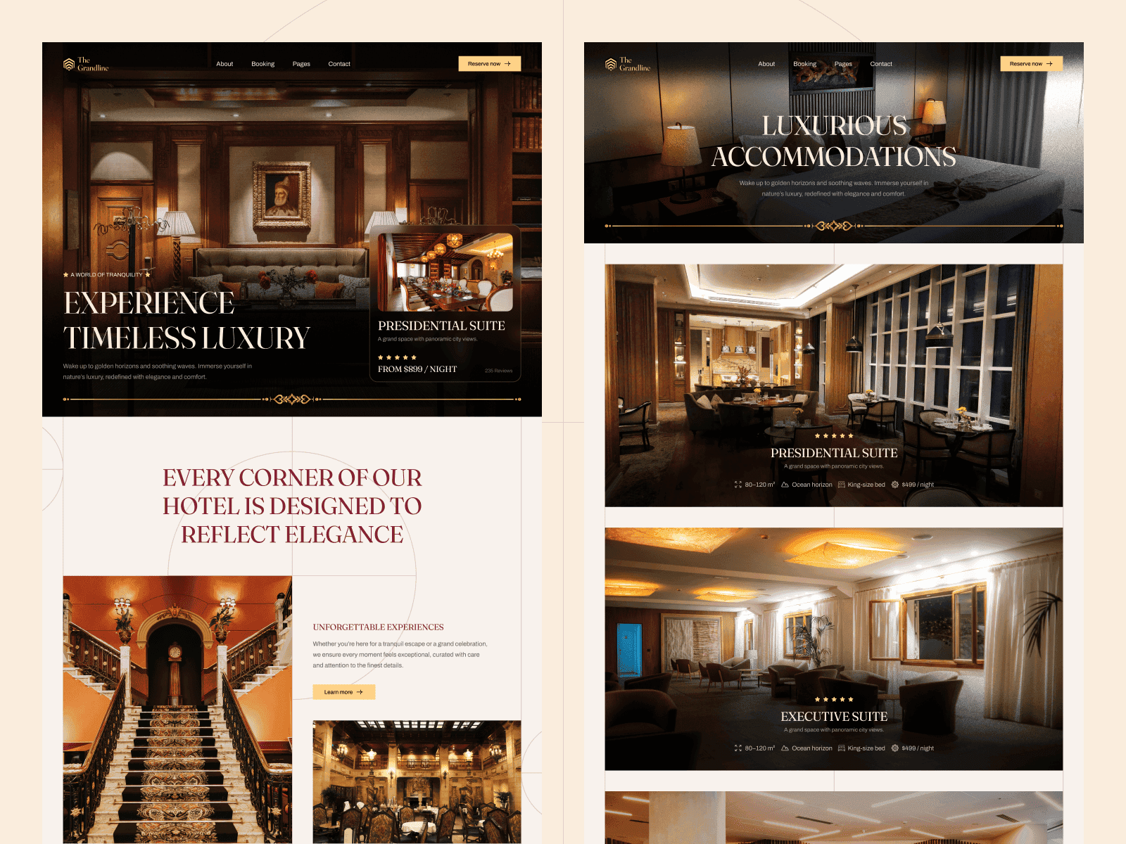 Your hotel deserves a website as beautiful as your property. Grandline gives you 16 stunning pages designed to showcase every detail of your luxury hospitality business. From elegant room galleries to smooth booking flows, everything is built to impress and convert.