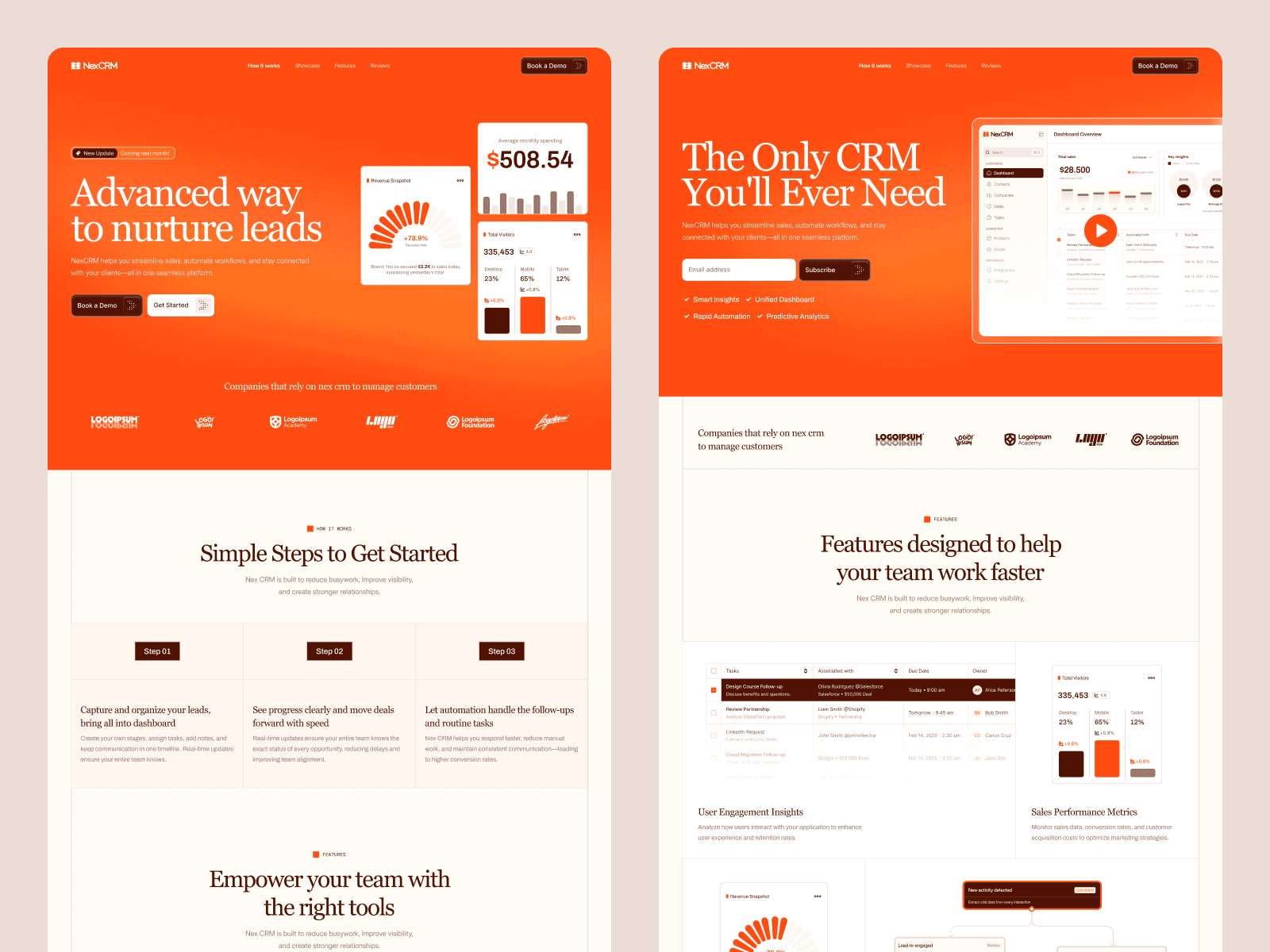 What makes NexCRM special? You get multiple layout options for key pages. Want to test different homepage designs? No problem. Need various pricing page styles? We've got you covered. This flexibility means you can pick what works best for your brand without starting from scratch.