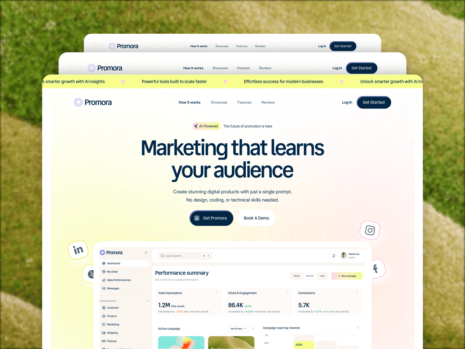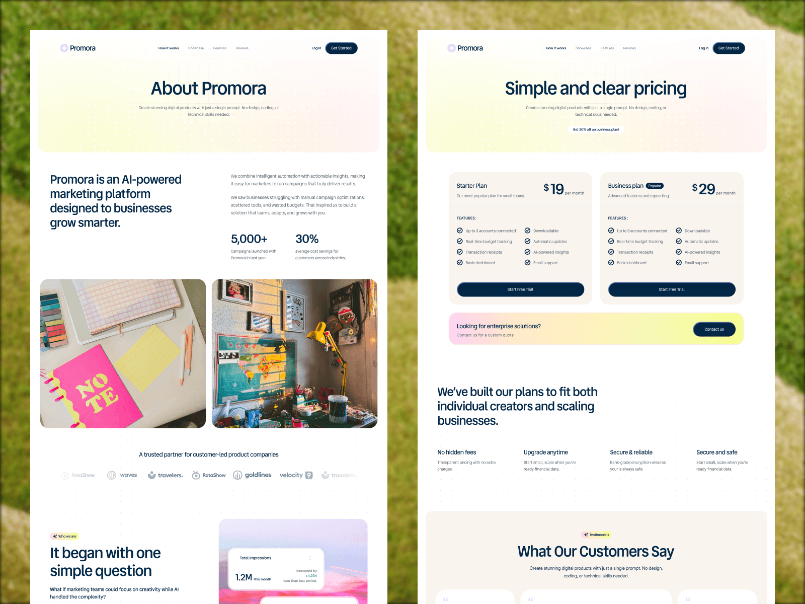 Start building your AI marketing platform or SaaS website today with Promora and impress your users from the first click.