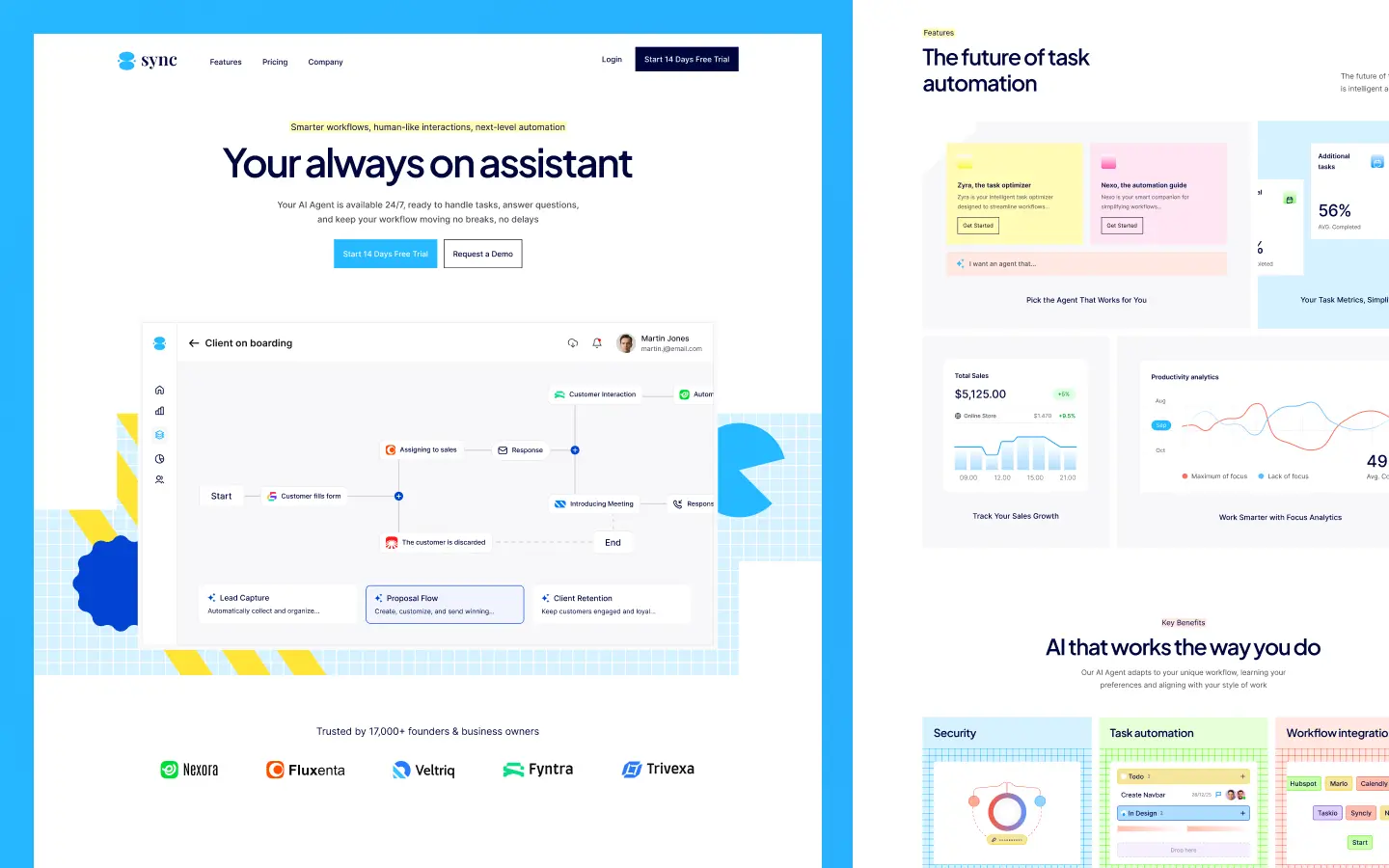 Introducing Sync – a modern, trendy & playful multi-layout Webflow template crafted for SaaS and startup businesses.